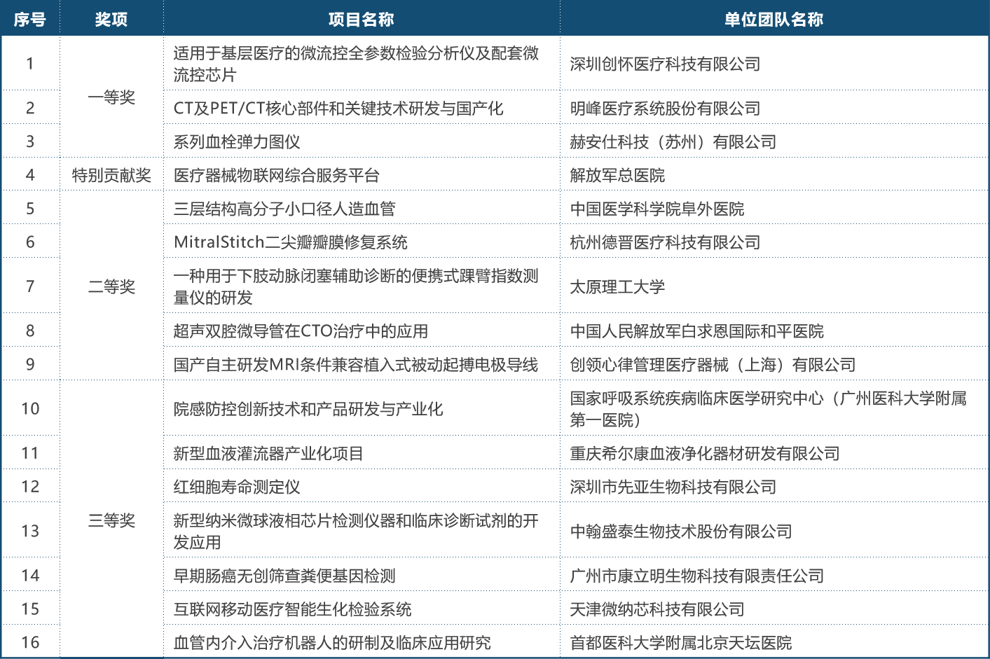 首屆(2018)年中國醫療器械創新網創業大賽決賽獲獎名單
