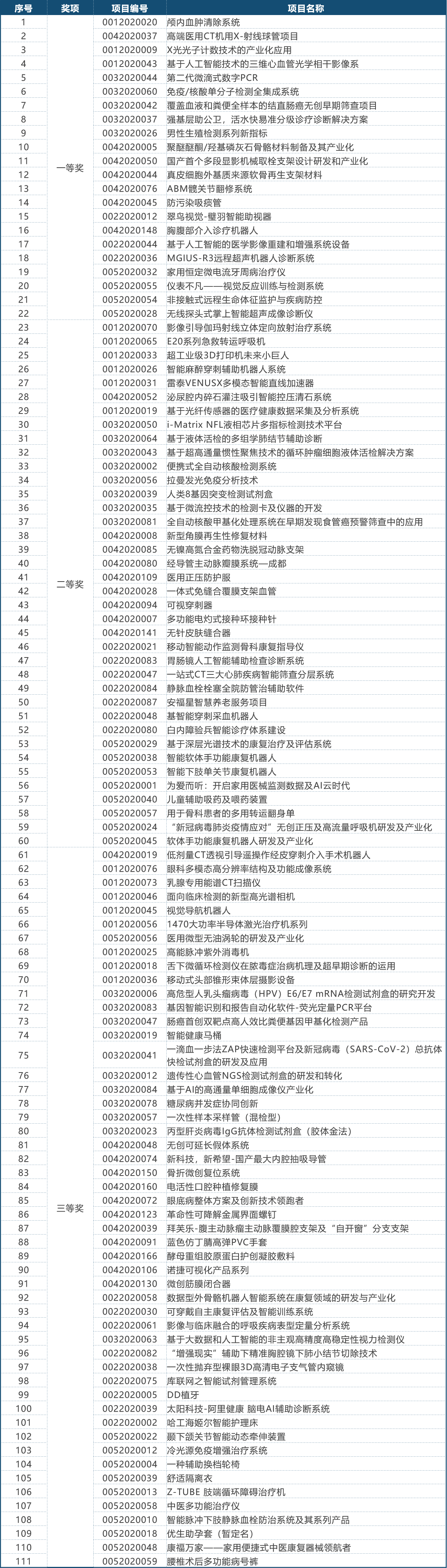 第三屆(2020)中國醫療器械創新網創業大賽決賽獲獎名單